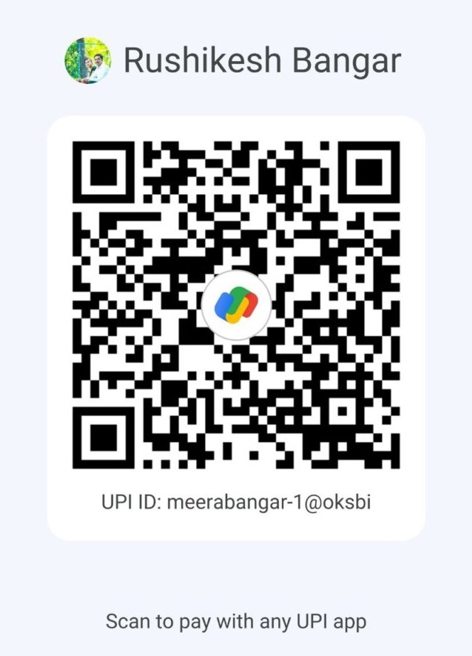 - 8087-723108 या नंबर वर ₹ 5,999 Google Pay / Phonepe द्वारे किंवा खाली दिलेल्या QR Code Scan करून पाठवावेत. ( Click here – QR Code )